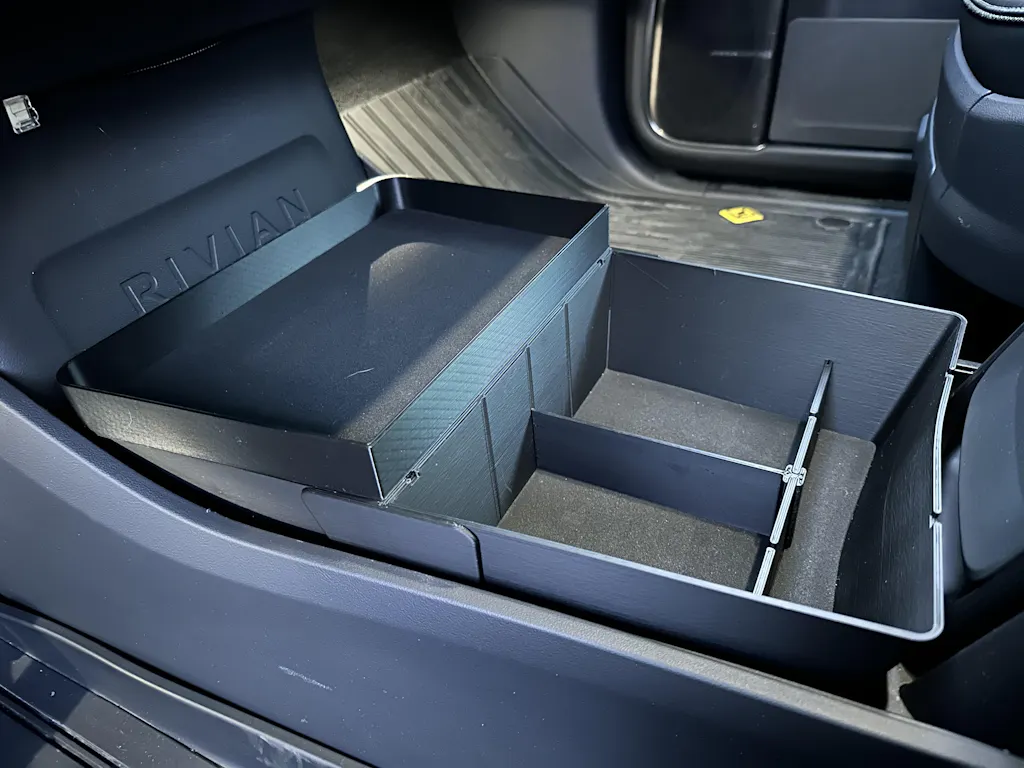 Unleash the full potential of your Rivian electric vehicle with our specially designed Floor Organizer. Crafted with the same attention to detail and rugged spirit that defines the Rivian brand, this accessory is your ticket to maximizing interior space and keeping your gear organized during all your adventures.