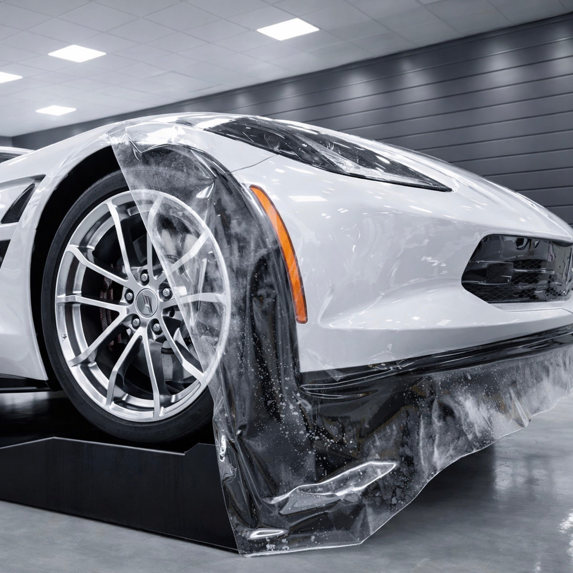 The surface actively resists water and contamination, helping the film stay cleaner between washes and reducing visible spotting during curing and delivery.